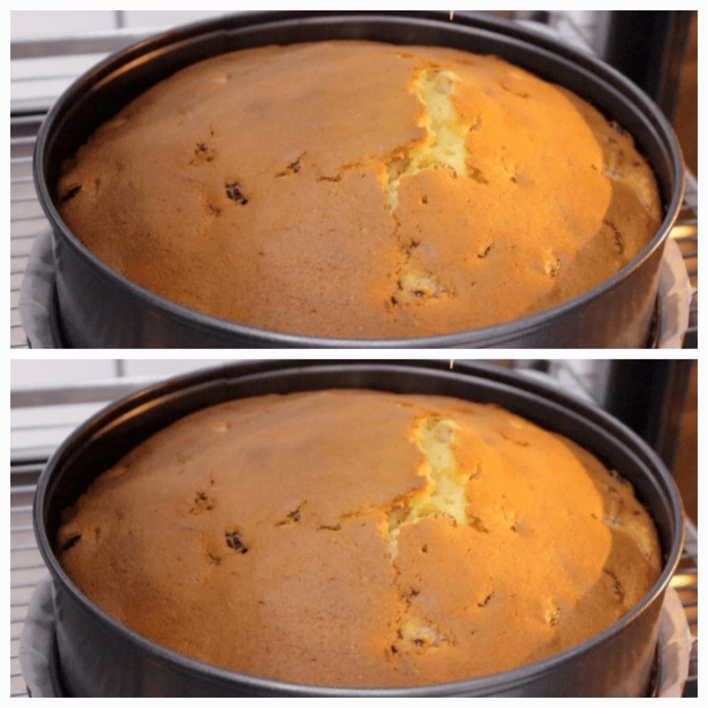 Беремо форму діаметром 24 см, застеливши дно пергаментним папером, зайве обрізаємо і переливаємо тісто у форму. Розрівнюємо лопаткою, тісто має заповнювати форму трохи вище за середину. І ставимо випікатися у нагріту до 180 градусів духовку на 50-60 хвилин.