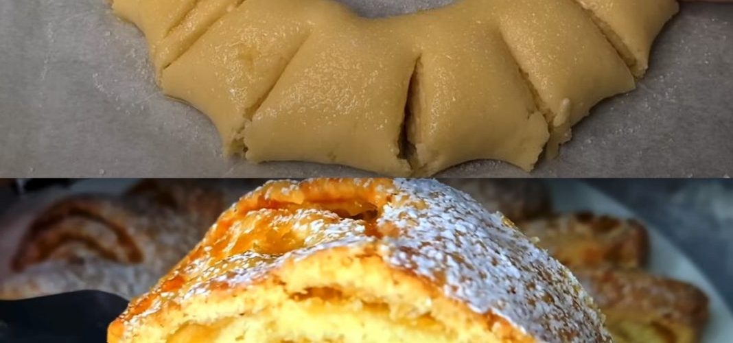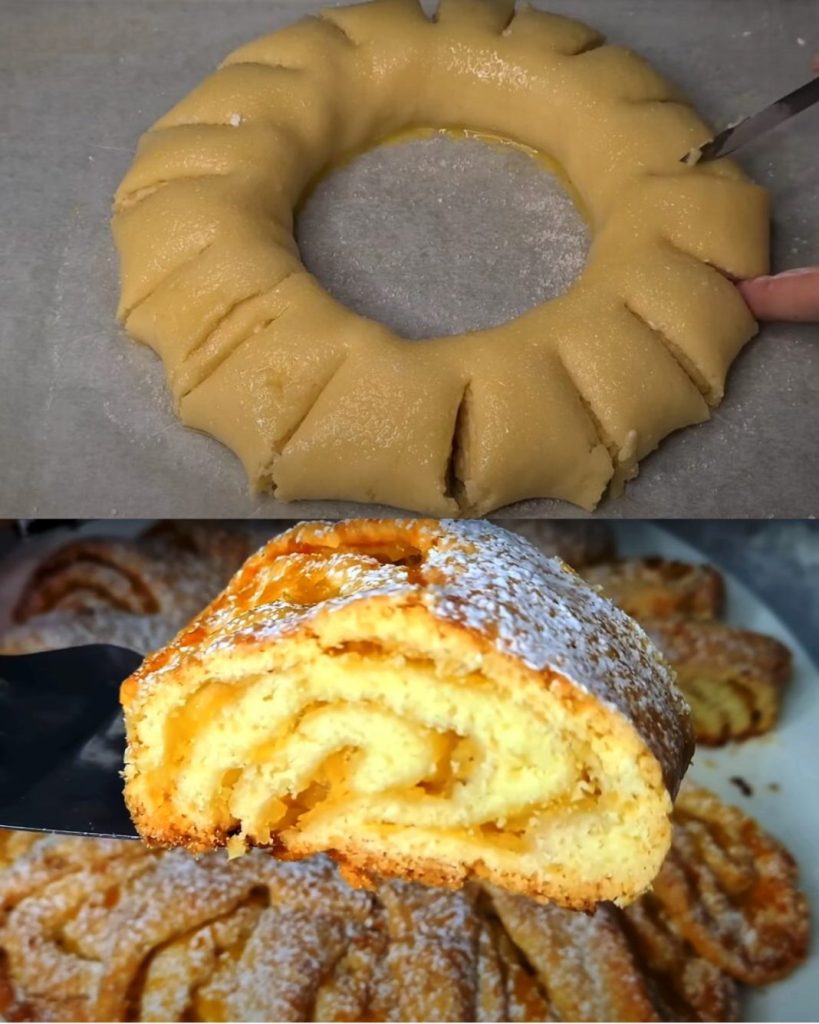 Згорніть тісто в рулет, начинкою всередину, і перекладіть його на деко, застелене пергаментом.
