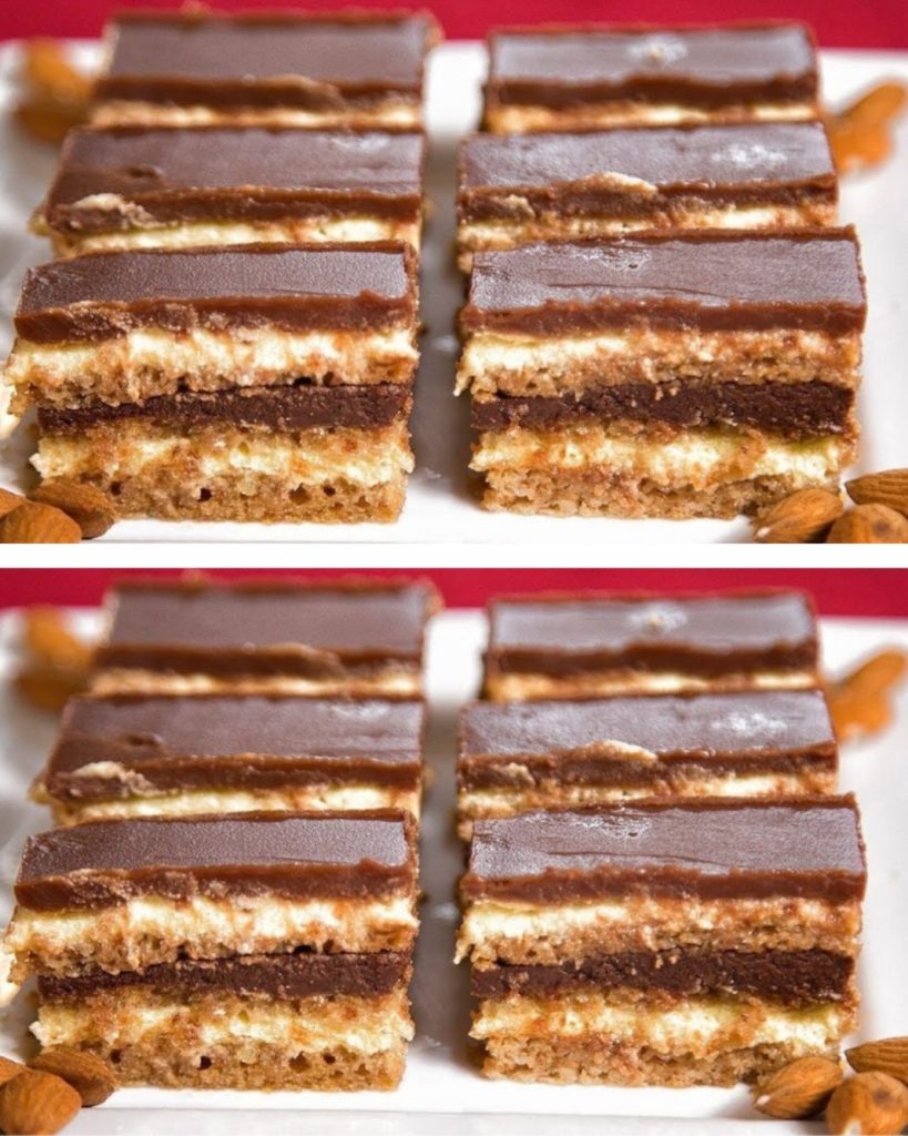 Для листів покладіть мигдаль у миску. Додайте цукрову пудру, яйця, розтоплене масло, крохмаль і перемішайте до однорідності. Наприкінці ми також вводимо білкову піну за допомогою шпателя. Ділимо склад на 3 рівні частини.