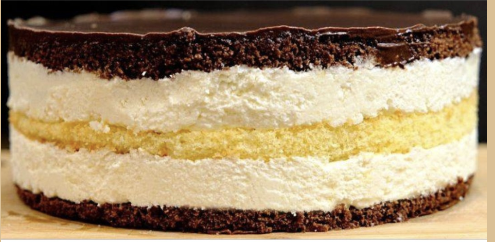 2. Накрийте білим коржем і знову покрийте верх кремом. Потім покладіть шоколадний корж.