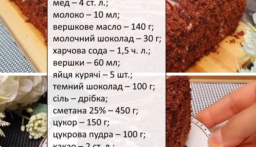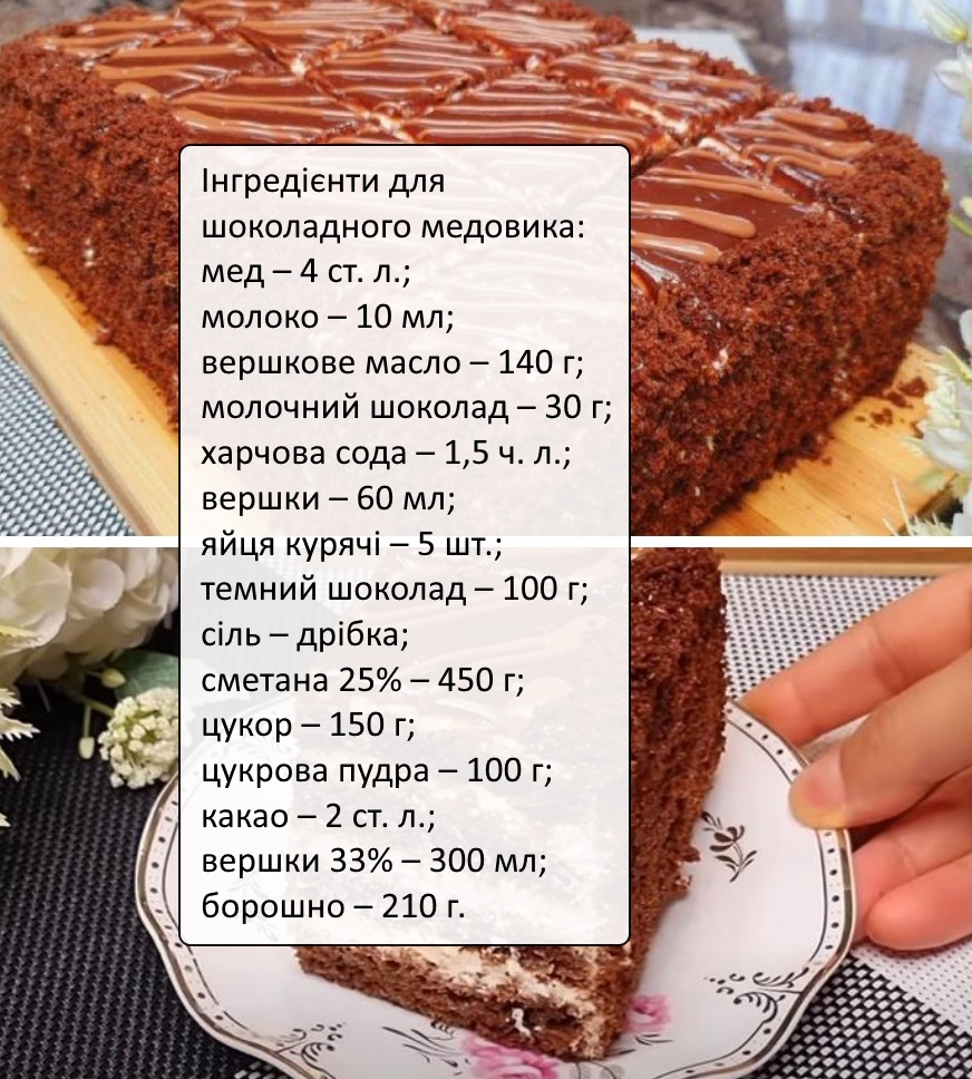 Як результат, ми маємо смачний та красивий шоколадний медовик.