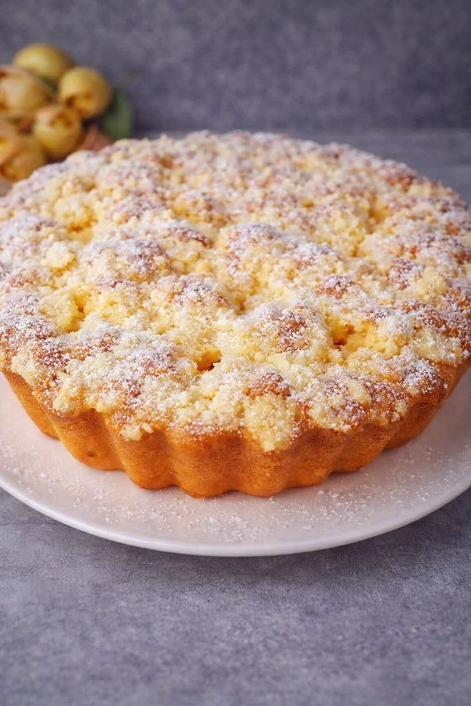 У мисці змішую борошно, цукор і масло, перетираю руками до стану крихти. Посипаю нею пиріг.