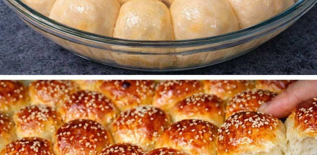 Жовток змішуємо з ложкою молока. Накриваємо пиріжки плівкою на 20 хвилин, після чого змащуємо яєчною сумішшю та посипаємо кунжутом.